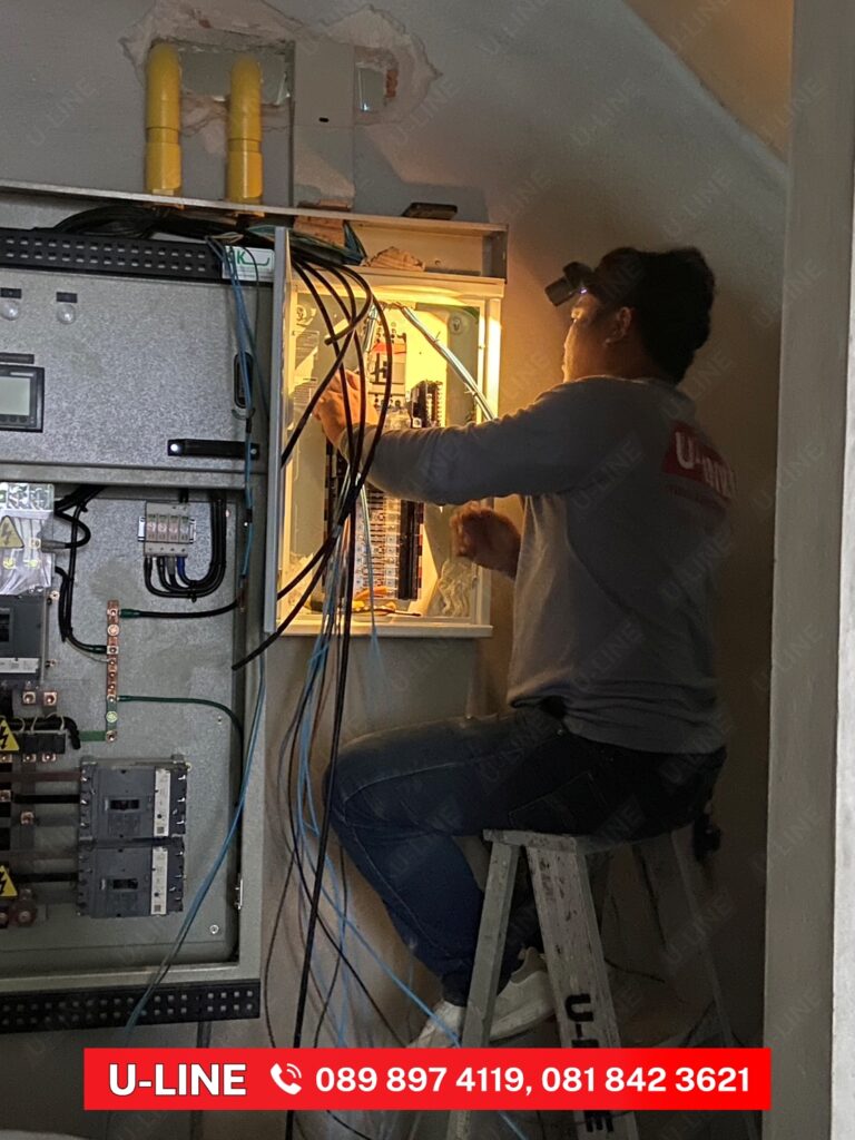 ไซต์นี้ ลูกค้าทำการ renovate จากเดิมเป็นอพาร์ทเม้นท์ มาเป็นสำนักงานและโกดังเก็บของ จึงต้องเดินระบบไฟใหม่ทั้งหมดเพื่อให้ตอบโจทย์การใช้งานของลูกค้า ทางทีมยู-ไลน์ ซิสเท็มส์ทำการ wiring สายไฟและเดินท่อทั้ง emt และ upvc ระบบไฟภายในอาคารใหม่ ตั้งตู้ mdb ที่ได้มาตรฐานและคุณภาพดีจาก SK Power Electric และตู้ Load center ใหม่สำหรับไฟ 3 เฟส โดยเน้นการจัดสรรโหลดไฟฟ้าให้สมดุลเพื่อป้องกันปัญหาไฟตกหรือไฟเกิน พร้อมติดตั้งระบบแสงสว่างโคมตะแกรงฝังฝ้า ระบบไฟฟ้าจ่ายเครื่องปรับอากาศพร้อมติดตั้ง timer