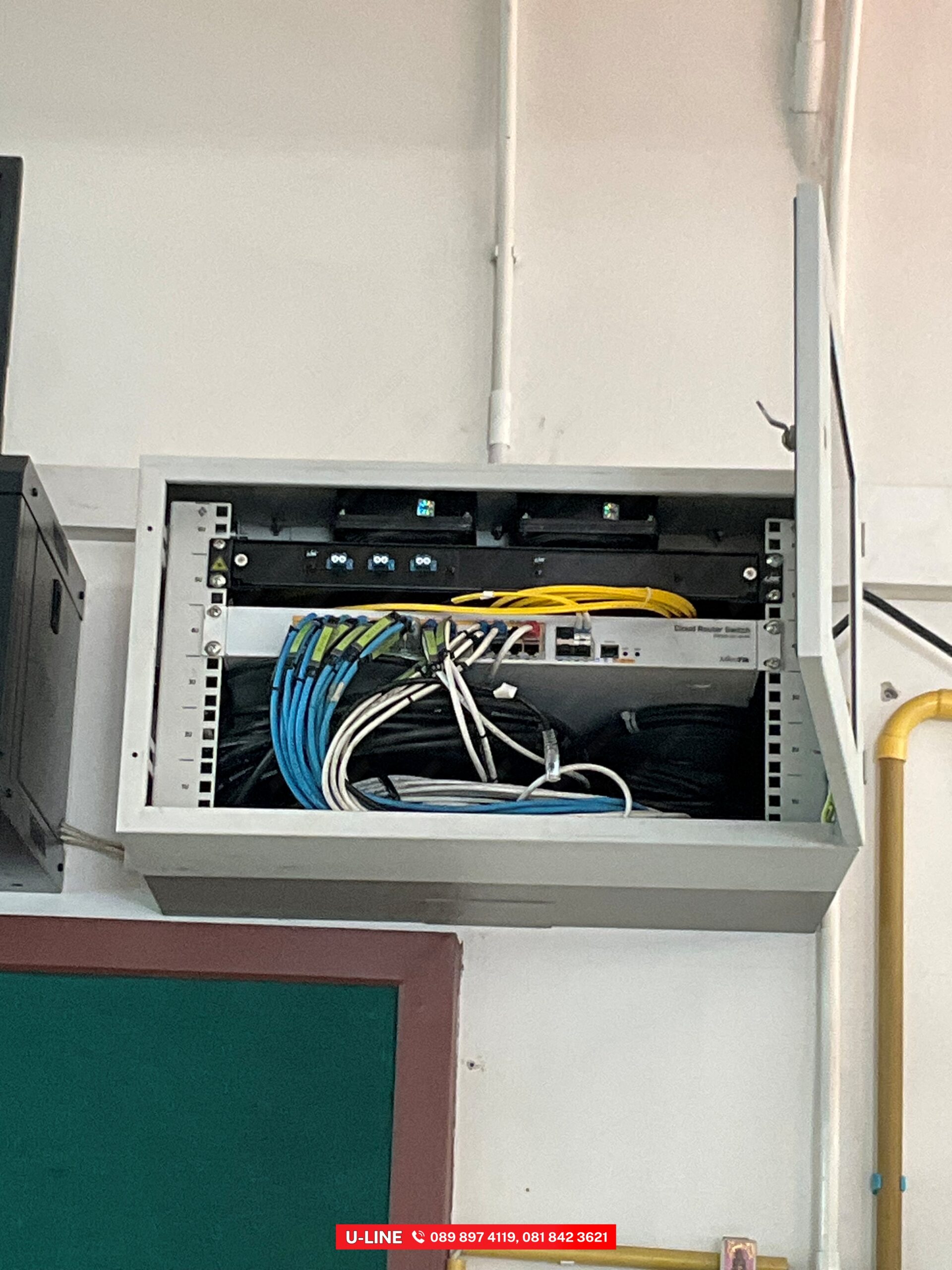 งานเดินสายไฟเบอร์ออฟติค (Fiber optic cable) หรือสายใยแก้วนำแสง พร้อมทดสอบและรีพอร์ต Test and report OTDR งานปรับปรุงแก้ไขระบบอินเตอร์ งานเดินสายไฟเบอร์ออฟติคภายในโรงเรียนหอวัง ปทุมธานี แบบเร่งด่วนเนื่องจากสายของเดิมเสียหาย ทำให้ภายในโรงเรียนไม่มีอินเตอร์เน็ตใช้งาน ทางบริษัท ยู-ไลน์ ซิสเท็มส์ จำกัด จึงเข้าไปแก้ไขอย่างเร่งด่วน เพื่อให้นักเรียนและบุคลากรได้ใช้งานอย่างสะดวกและราบรื่น