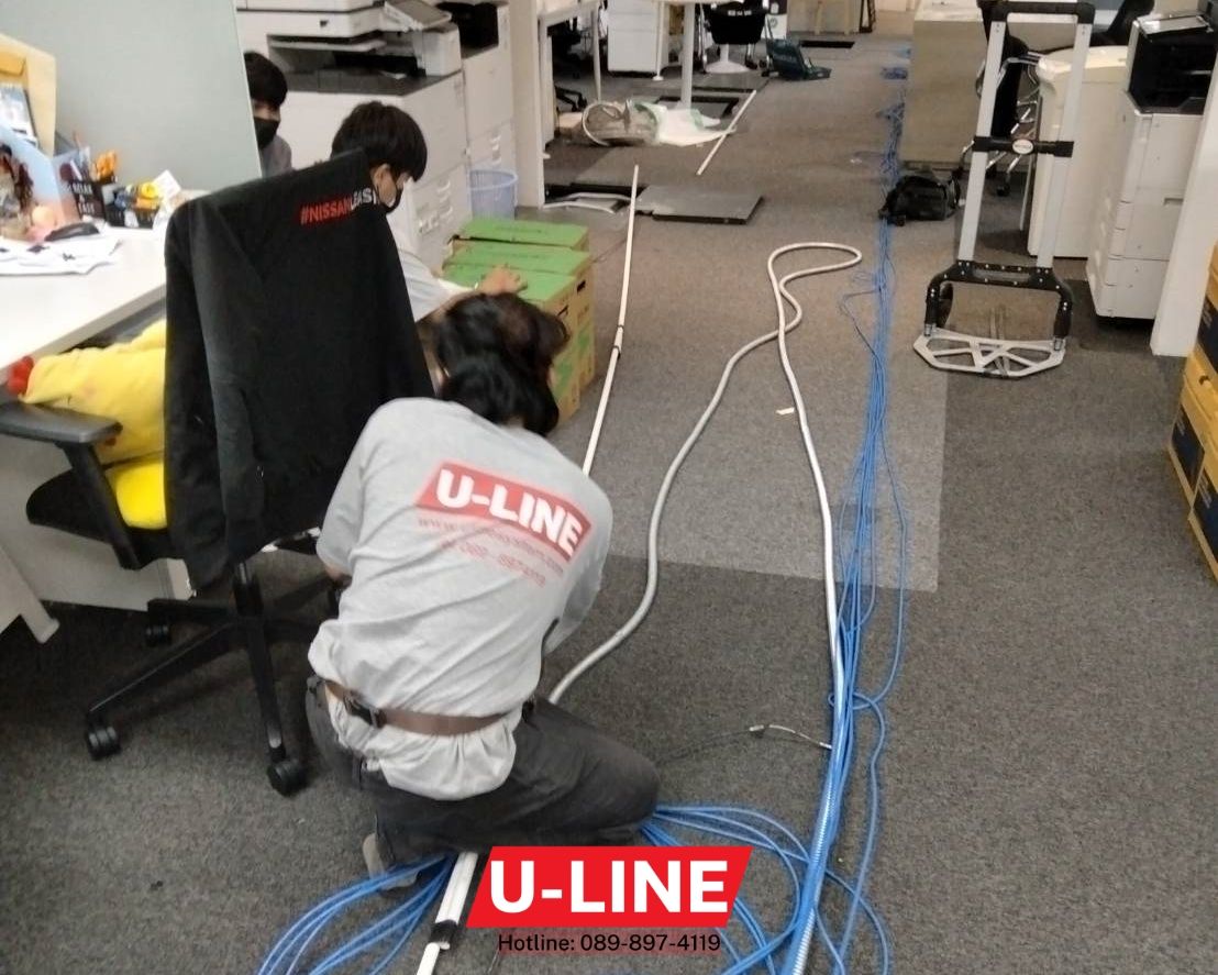 งานระบบแลน (LAN) พร้อมติดตั้งเต้ารับแลน และจัดสายแลนในตู้แร็ค (wire management) ในสำนักงาน บจก. นิสสัน ลีสซิ่ง (ประเทศไทย)โดยทีมช่างไฟฟ้าจาก บริษัท ยู-ไลน์ ซิสเท็มส์ จำกัด