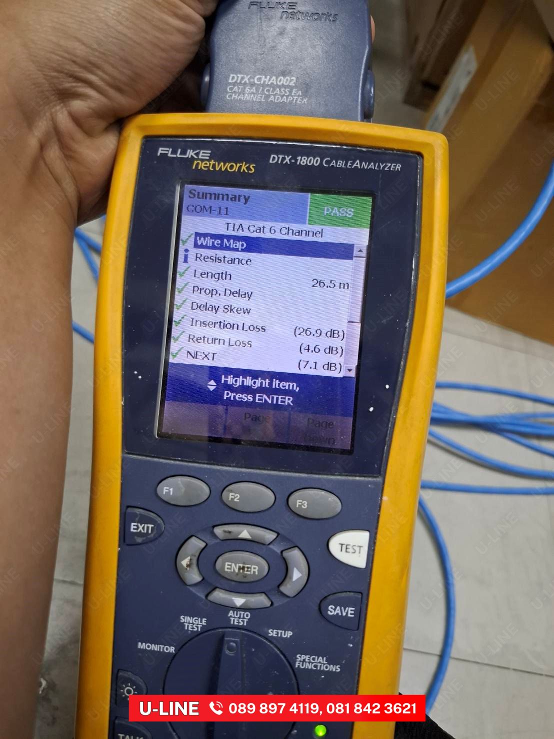งานเดินสายแลนและ UTP test ด้วยเครื่อง fluke เพื่อให้การทำงานไม่มีติดขัด ติดตั้งเต้ารับสายแลน (LAN outlet) บริเวณใต้โต๊ะทำงานเพื่อความสะดวกและเพิ่มประสิทธิภาพในการทำงาน ภายในสำนักงานแห่งหนึ่งแถวประชาชื่น นนทบุรี
